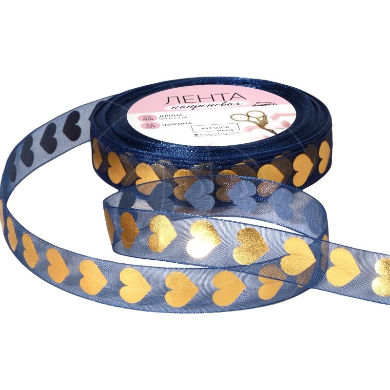 Доставка Лента для декора и упаковки Тёмно-синяя Сердца 1,5 см из магазина в вашем городе:
