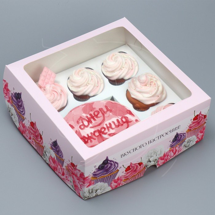 Доставка Коробка для бенто-торта и капкейков "Вкусное настроение" 25х25х10 см из магазина в вашем городе: